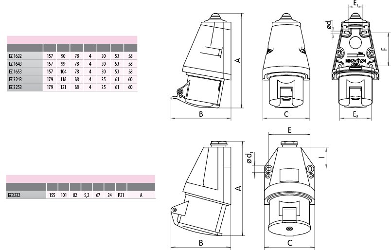 Настенная розетка 3+N+PE 32А 380В IP44 EZ 3253 ETI 4482039