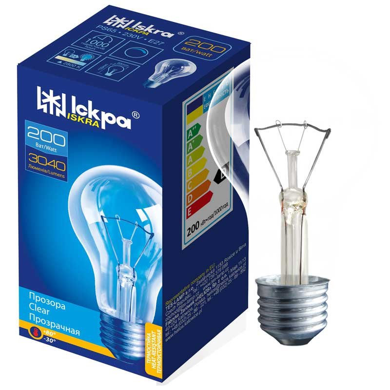 Лампа розжарювання 200W E27 230V PS65 Iskra прозора
