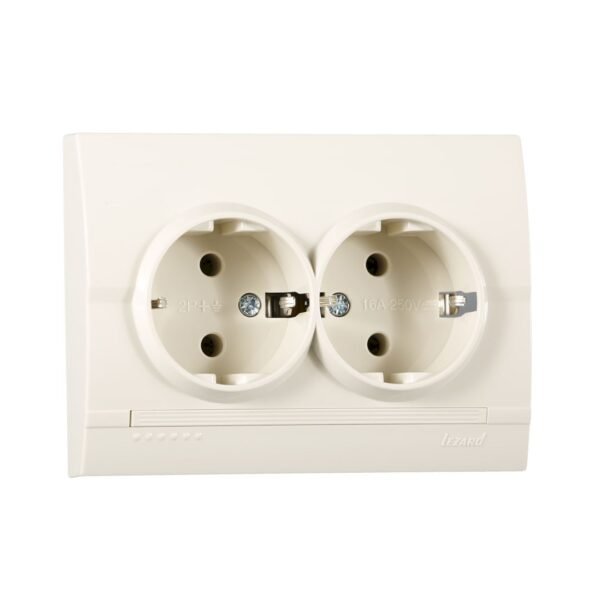 Розетка із заземленням подвійна Lezard Deriy, крем (702-0303-127В)