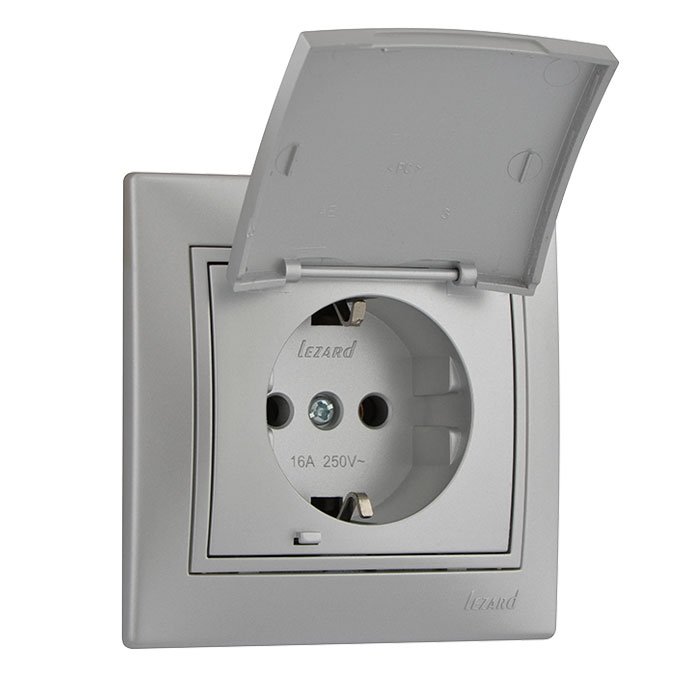 Розетка із заземленням і кришкою Lezard Mira, сірий металік (701-1010-123B)