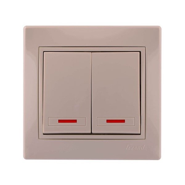 Выключатель двухклавишный с подсветкой Lezard Mira, крем (701-0303-112)
